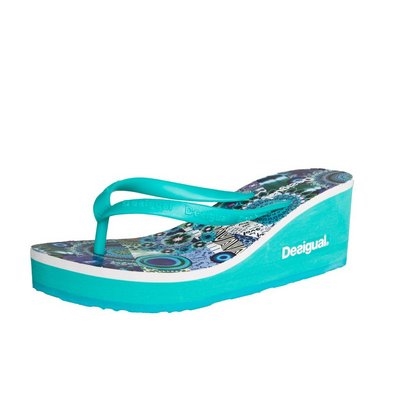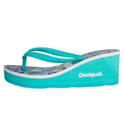 Unas flip flop azules con una cuña de 6cm, frescas y divertidas. Póntelas y combínalas con un helado.