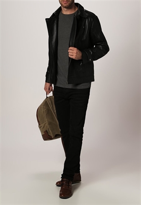 Largo:tres cuartosAjuste:ceñidosCierre:cremalleraRelleno:100% poliésterBolsillos:con cremalleraAncho de la espalda:44 cmModelo, altura:188 cmOcasión:tiempo libreGrosor del relleno:ligeroEstampado:unicolorLargo de la prenda:66 cmCuello:tipo sastreLargo de la manga:69 cmLargo de manga:manga largaMaterial exterior:100% cueroCuidados:lavado de cuero profesionalNúmero de artículo:ES122J036-Q11