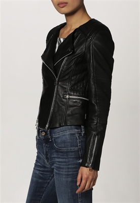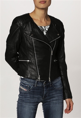 Largo:cortaAjuste:tailoredCierre:cremalleraRelleno:100% poliésterBolsillos:con cremallera, interioresAncho de la espalda:35 cmModelo, altura:176 cm, lleva la talla 36Estampado:unicolorLargo de la prenda:52 cmCuello:tipo sastreLargo de la manga:61 cmLargo de manga:manga largaMaterial exterior:100% cueroCuidados:lavado de cuero profesionalNúmero de artículo:GO221L00H-Q11
