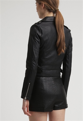 Largo:normalCierre:cremalleraRelleno:100% algodónBolsillos:con cremallera, con solapaAncho de la espalda:34 cmModelo, altura:181 cm, lleva la talla 36Estampado:unicolorLargo de la prenda:46 cmCuello:tipo sastreLargo de la manga:62 cmLargo de manga:manga largaMaterial exterior:100% cueroCuidados:lavado de cuero profesionalNúmero de artículo:MF921L000-Q11
