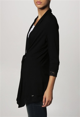 Largo:normalAjuste:normalCierre:cordonesMaterial/composición:jersey, encajeModelo, altura:179 cmOcasión:tiempo libreEstampado:unicolorLargo de la prenda:76 cmCuello:estilo bufandaLargo de la manga:44 cmLargo de manga:3/4Material exterior:96% viscosa, 4% elastanoCuidados:no utilizar secadora, lavar a máquina a 30°C, programa delicadoNúmero de artículo:AN621I05Y-Q11