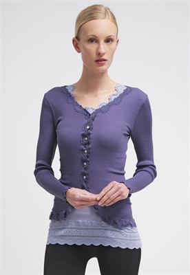 contiene partes no textiles de origen animalLargo:normalAjuste:ceñidosCierre:botónMaterial/composición:encaje, tejido de puntoModelo, altura:179 cm, lleva la talla MCuello/escote:en V pronunciadoOcasión:tiempo libreEstampado:unicolorLargo de la prenda:59 cmLargo de la manga:61 cmLargo de manga:manga largaMaterial exterior:70% seda, 30% algodónCuidados:lavar a mano, se puede lavar en secoNúmero de artículo:RM021D009-K14