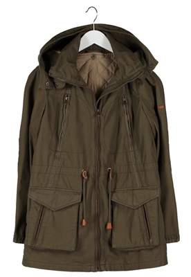 contiene partes no textiles de origen animalLargo:por el musloAjuste:normalCierre:cremalleraDetalle capucha:desmontableBolsillos:con cremallera, con solapaMaterial/composición:canvasAncho de la espalda:35 cmModelo, altura:178 cm, lleva la talla SEstampado:unicolorLargo de la prenda:75 cmCuello:alzadoLargo de la manga:60 cmLargo de manga:manga largaMaterial exterior:100% algodónCuidados:no utilizar secadora, lavar a máquina a 30°CNúmero de artículo:ED121G01V-N11