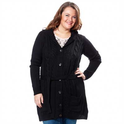 chaqueta larga muy calentita para este invierno. - Capucha con forro de imitación pelo de borreguito - Punto trenzado - Cierre delantero de botones - Cinturón de punto para anudar en la cintura - Largo de espalda: 95 cm aproximadamente. Nuestra modelo lleva una talla 46/48.chaleco: 100% acrilico cinturon: 100% acrilicoLavable a máquina.
