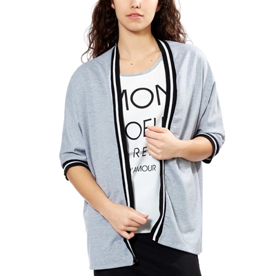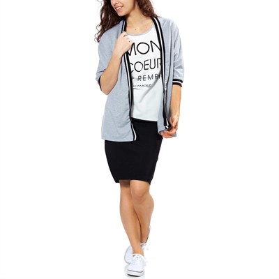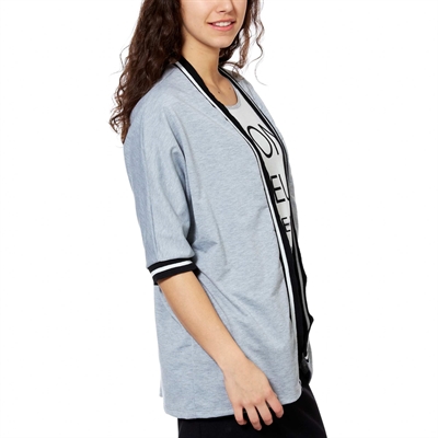 Su elegante aspecto deportivo combinará a la perfección con una blusa o una sudadera y una falda de tubo. - chaqueta larga abierta de punto - Manga 3/4 - Remates de punto brillante en las vueltas y los puños - Largo de espalda: 75 cm aproximadamente. - Nuestra modelo lleva una talla M y mide 1,77 m.97% poliester,3% elastanoLavable a máquina.