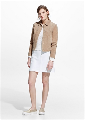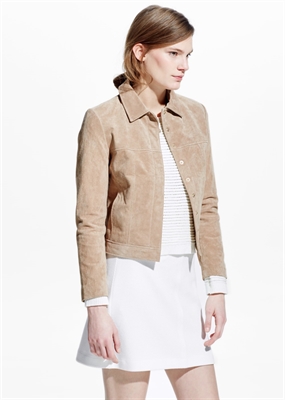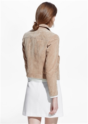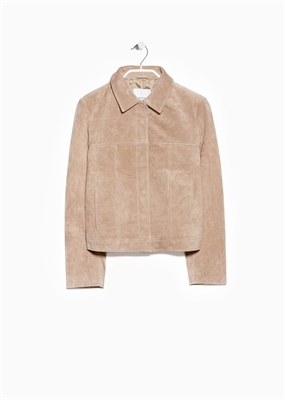 Chaqueta de serraje con cierre oculto de botones a presión en la parte delantera y manga larga.