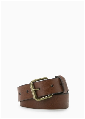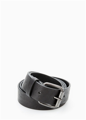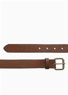 Cinturón en efecto piel con cierre de hebilla cuadrada metálica y trabilla.