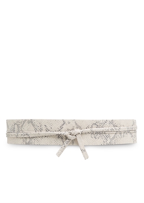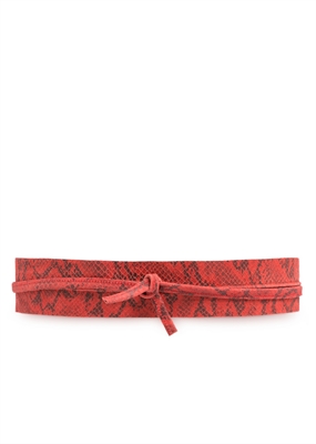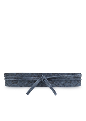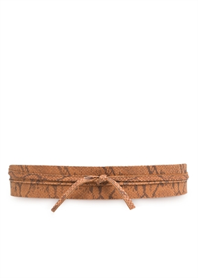 Cinturón fajín de serraje con print animal y tiras en los extremos para anudar.