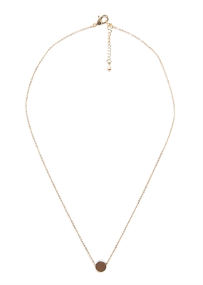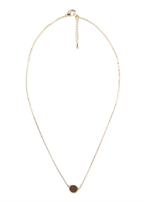 Collar de cadena fina con abalorio circular en contaste. Cierre de cadena y mosquetón.