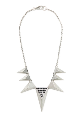 Collar de cadena con colgante de pinchos, detalle de strass y cierre de mosquetón.