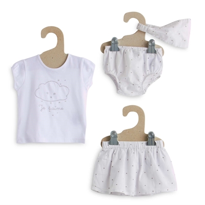 Viste a tu pequeña de la cabeza a los pies con este conjunto. - Conjunto de 4 piezas: camiseta + falda + braguita + pañuelo - Camiseta de manga corta - Cuello redondo - Cierre trasero con broches de presión - Bordado de fantasía en la parte delantera - Falda evasé de gasa de algodón - Cintura elástica - Bordado all over de lunares - Braguita de gasa de algodón - Acabados elásticos - Bordado all over de lunares - Pañuelo de gasa de algodón - Elástico - Lunares bordados - Puro algodónfalda: 96% algodon,4% poliester FORRO 100% algodon braga: 96% algodon,4% poliester camiseta: 100% algodon panoleta: 96% algodon,4% poliesterLavable a máquina.