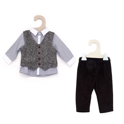 Conjunto chic y elegante para bebés. - Camisa de rayas de algodón - Cuello sin botones - Cierre con botones - Cuello, puños y pieza de botones de color en contraste - Chaleco - Cierre con botones - Punto jaspeado y forro liso - 2 bolsillos delanteros falsos - Pantalón de lino y algodón con cintura elástica - Forro completo de algodón - 2 bolsillos delanteros falsosamericana:FORRO 74% poliester,26% algodon 57% poliester,43% algodon camisa: 100% algodon pantalon:FORRO 74% poliester,26% algodon ENCIMA 50% algodon,50% linoSe puede lavar a máquina.