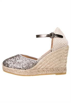 Plantilla:telaMaterial interior:combinación de piel/telaForma del tacón:cuña, plataforma planaAltura del tacón:8.5 cmGrosor del relleno:relleno contra el fríoAltura de la plataforma:2 cmDetalle:lentejuelas, pieza elásticaCierre:hebilla/cordonesPuntera:redondaSuela:fibra sintéticaMaterial exterior:piel/telaNúmero de artículo:K4511L00K-D11