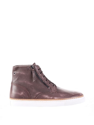 Sneaker, trated leather, rubber sole, zip details, logo detail.