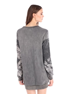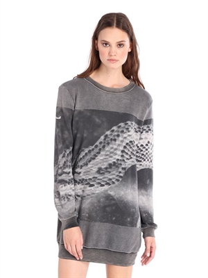 Sweat dress, crew neck, long sleeves, photo print to chest, rib knit cuffs.