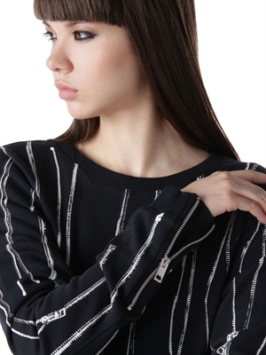 A casual look with rock 'n' roll spirit.Crew neck, long sleeves, zip details, metallic logo detail.