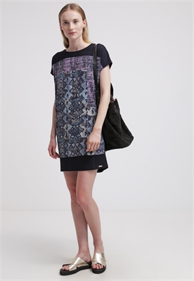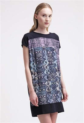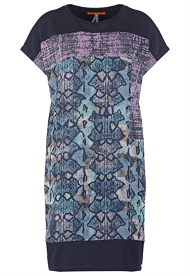 Largo:cortaAjuste:anchoMaterial/composición:jerseyModelo, altura:178 cm, lleva la talla SCuello/escote:cuello redondoOcasión:tiempo libreEstampado:estampadoLargo de la prenda:86 cmLargo de manga:manga extracortaMaterial exterior:56% poliéster, 41% viscosa, 3% elastanoMaterial suplemento:100% sedaCuidados:lavar a manoNúmero de artículo:BO121C02F-K11