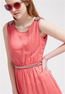 Largo:cortaAjuste:normalRelleno:100% algodónAncho de la espalda:36 cmModelo, altura:179 cm, lleva la talla SCuello/escote:cuello redondoLargo de la prenda:88 cmDetalles:cinturón incluido, enaguas, cintura elásticaLargo de manga:sin mangasMaterial exterior:100% viscosaCuidados:lavar a máquina a 30°CNúmero de artículo:K2021C01C-J11