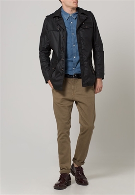 contiene partes no textiles de origen animalCierre:botónBolsillos:con cremallera, con solapa, interioresAncho de la espalda:43 cmModelo, altura:188 cm, lleva la talla 48Largo de la prenda:76 cmLargo de la manga:66 cmLargo de manga:manga largaMaterial exterior:92% algodón, 5% cuero, 3% elastanoCuidados:lavado de cuero profesionalNúmero de artículo:JM222J00N-Q11