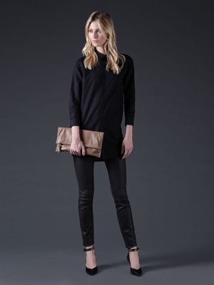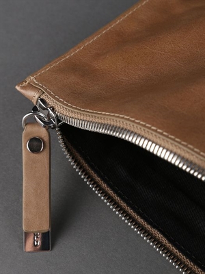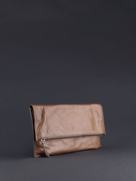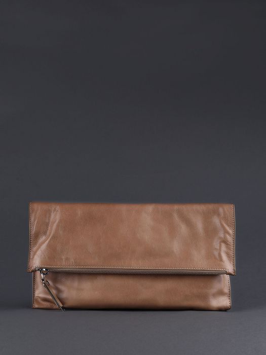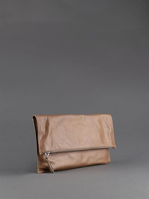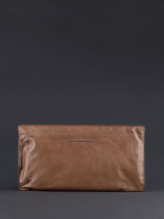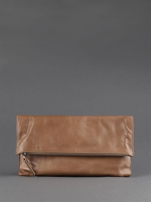 Sleekly crafted from supple calf, this beige clutch is instant nuetral sophistication for nights and days.