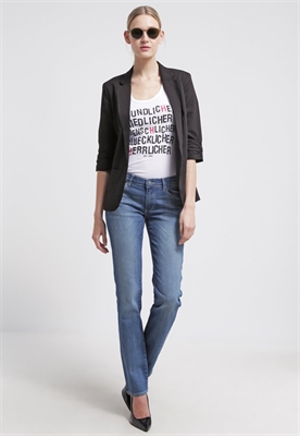 contiene partes no textiles de origen animalLargo:normalAjuste:rectosLargo entrepierna:79 cmMaterial/composición:vaqueroModelo, altura:175 cm, lleva la talla 27x32Ocasión:tiempo libreLargo exterior de la pierna:97 cmCierre:cremallera invisibleBolsillos:traseros, lateralesCintura:normalMaterial exterior:98% algodón, 2% elastanoCuidados:lavar a máquina a 40 °CNúmero de artículo:WR121N013-K11