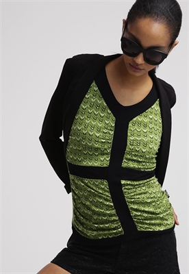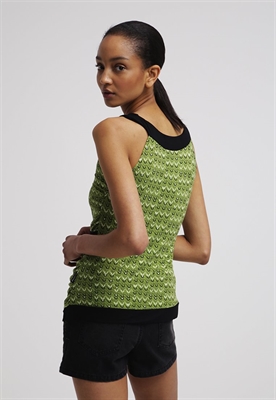 Largo:normalModelo, altura:180 cm, lleva la talla 36Cuello/escote:de picoLargo de la prenda:62 cmLargo de manga:sin mangasMaterial exterior:95% viscosa, 5% elastanoCuidados:lavar a mano, se puede lavar en secoNúmero de artículo:2ZE21D00N-Q11