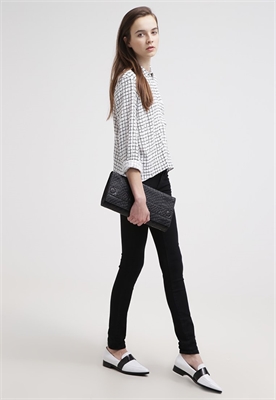 contiene partes no textiles de origen animalLargo:normalLargo entrepierna:81 cmModelo, altura:179 cm, lleva la talla 27Largo exterior de la pierna:101 cmCierre:cremallera invisibleBolsillos:traseros, lateralesEstampado:unicolorDiseño:tallaje pequeñoCintura:bajoMaterial exterior:92% algodón, 5% poliéster, 3% elastanoCuidados:no utilizar secadora, lavar a máquina a 30°CNúmero de artículo:FO121A034-K11