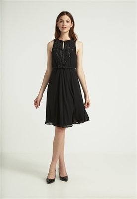 Largo:por la rodillaAjuste:normalModelo, altura:178 cmCuello/escote:cuello redondoOcasión:celebraciónEstampado:unicolorLargo de la prenda:105 cmDetalles:cinturón incluido, enaguasLargo de manga:sin mangasMaterial exterior:100% poliésterCuidados:lavar en secoNúmero de artículo:TO121C02H-Q11