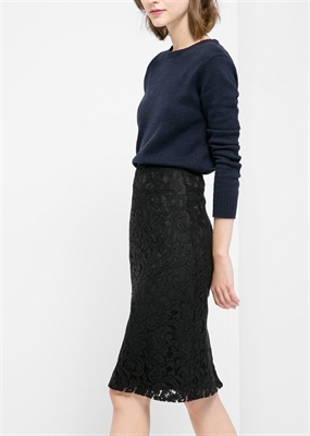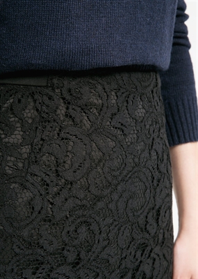 Falda bordada de cintura alta confeccionada en una mezcla de algodón. Cierre de cremallera con gancho en la parte trasera y forro interior.