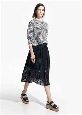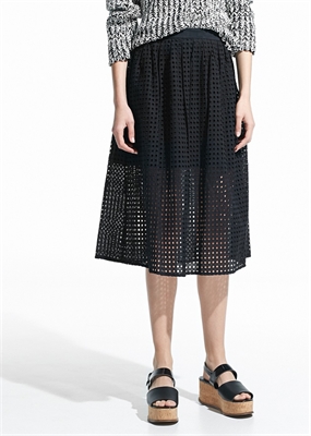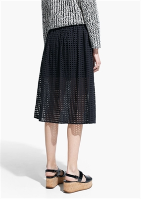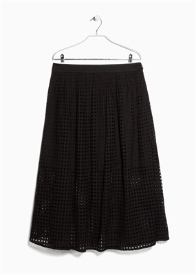 Falda midi de algodón con diseño geométrico calado. Forro interior en contraste y cierre lateral de cremallera.
