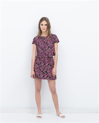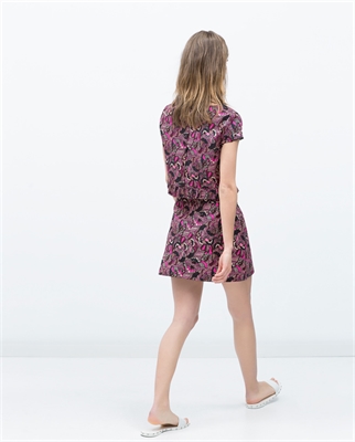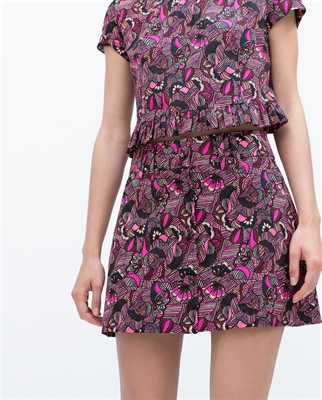 Falda mini. Botones delanteros. Cierre con cremallera. Estampada. ALTURA MODELO 170 CM