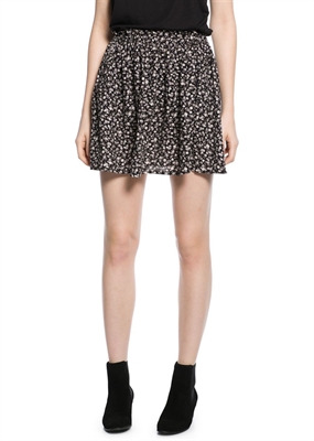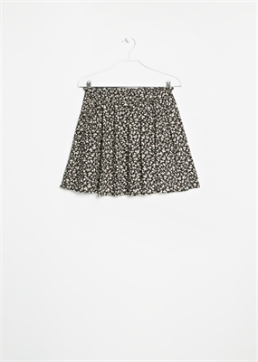 Falda ligera de vuelo con estampado floral. Cintura elástica, trabillas y dos bolsillos laterales.