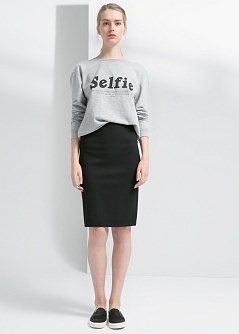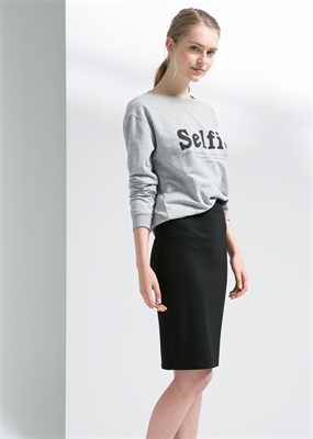 Falda lápiz en punto roma con cierre de cremallera y gancho lateral, forro interior.