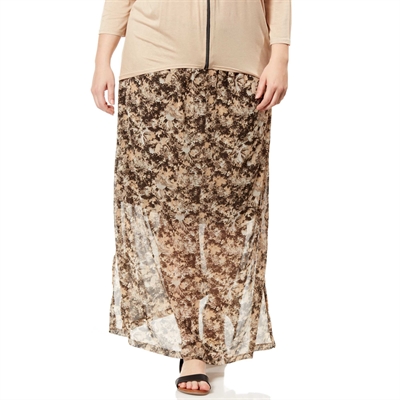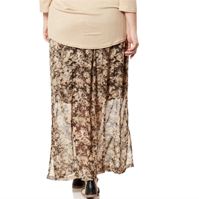 Una falda muy femenina, ligera y vaporosa: ¡ideal para los días de sol! - Falda larga de gasa - Con forro corto - Estampado all over - Cintura elástica - Largo de espalda: 99 cm aproximadamente. Nuestra modelo lleva una talla 46/48 y mide 1,77 metros.ENCIMA 100% poliester FORRO 100% poliesterSe puede lavar a máquina.