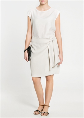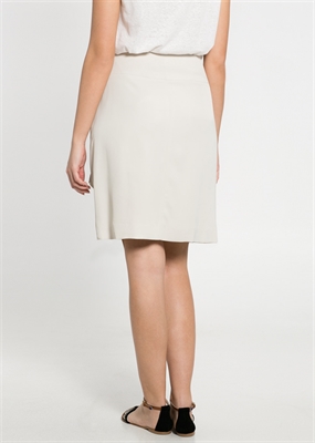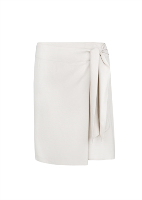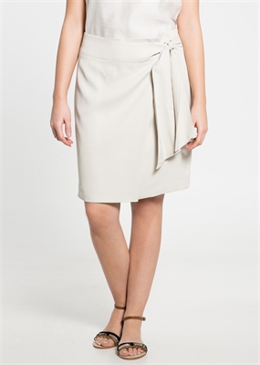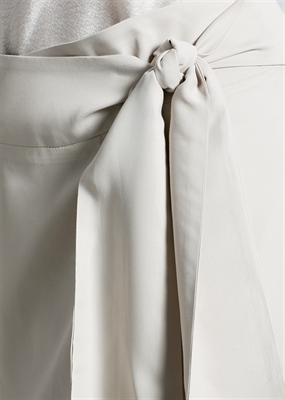 Falda en tejido fluido con lazo a la cintura. Cierre oculto de botones y forro interior.