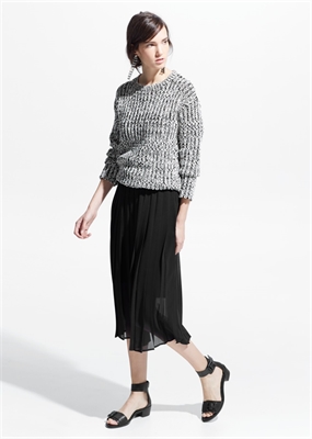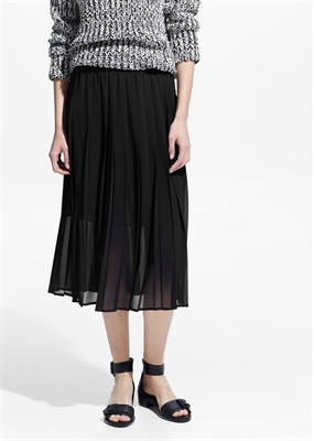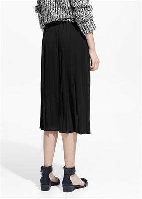 Falda midi plisada. Cintura con trabillas, cierre oculto de cremallera lateral y forro interior.