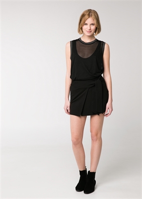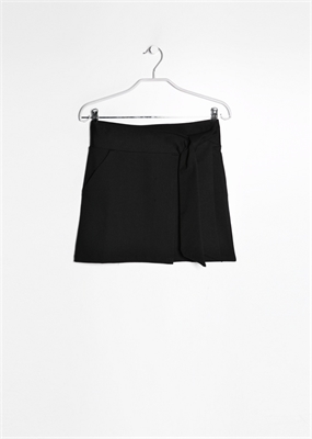 Falda cruzada confeccionada en punto roma con lazo para atar a la cintura y bolsillo lateral.