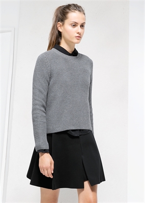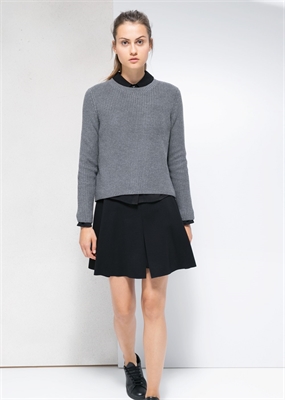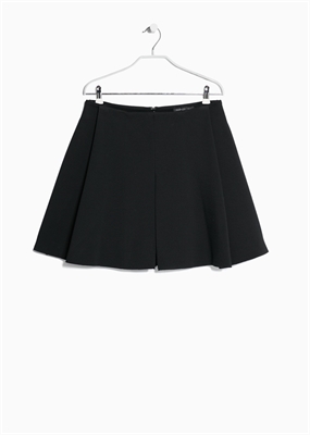 Falda de vuelo en punto roma con detalle de pliegues. Cierre de cremallera en la parte posterior y forro interior.