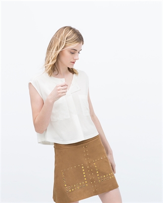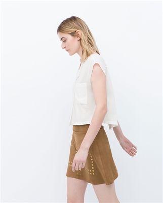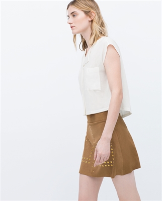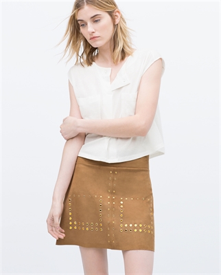 Falda antelina. Corte evasé. Cintura alta. Tachuelas.ALTURA MODELO: 178 cm