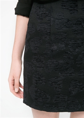 Falda con diseño de corazones confeccionada con algodón en tejido con textura. Cierre de cremallera y gancho posterior, forro interior.
