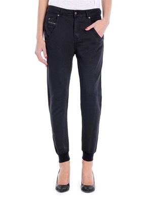 Five pocket set, elastic ankle cuffs, logo detail.