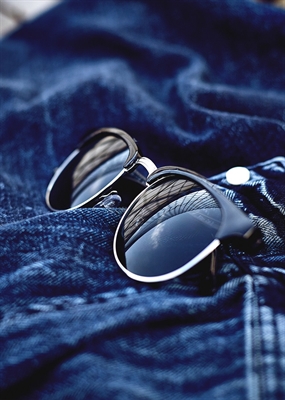 Gafas de sol con media montura de pasta y media metálica.