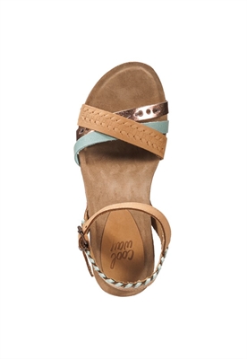 Plantilla:telaMaterial interior:combinación de piel/telaForma del tacón:cuña, plataforma en la parte delanteraAltura del tacón:5 cmAltura de la plataforma:2 cmDetalle:dibujo caladoCierre:hebilla/cordonesPuntera:abiertaSuela:fibra sintéticaMaterial exterior:pielNúmero de artículo:C3011L000-B11
