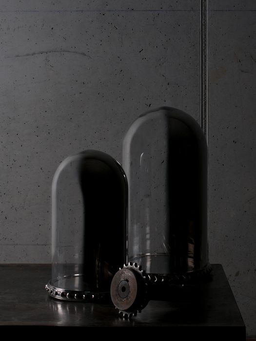 Large Glass Dome With Porcelain Plate "Ghost Shell" Material: transparent mirrored glassDimensions:cm 24,5 h. 429.7" h. 16.5"