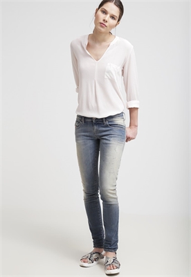 Largo:normalAjuste:slim fitLargo entrepierna:81 cmMaterial/composición:vaqueroModelo, altura:181 cm, lleva la talla 27x32Largo exterior de la pierna:100 cmCierre:cremallera invisibleBolsillos:traseros, lateralesCintura:normalMaterial exterior:94% algodón, 4% elastomultiester , 2% elastanoCuidados:no utilizar secadora, lavar a máquina a 30°C, programa delicadoNúmero de artículo:DI121N01H-K11