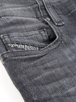 Five pocket set, stretch sweat garment dyed, logo detail.