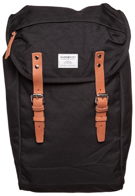 HANS - MOCHILA - BLACK WITH COGNAC BROWN LEATHER