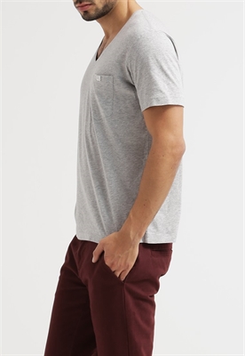 Largo:normalAjuste:normalMaterial/composición:jerseyModelo, altura:189 cm, lleva la talla MCuello/escote:de picoEstampado:jaspeadoLargo de la prenda:66 cmLargo de manga:cortaMaterial exterior:100% algodónCuidados:no utilizar secadora, lavar a máquina a 30°C, programa delicadoNúmero de artículo:DI122O00Q-C11