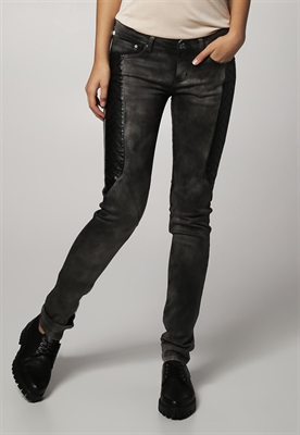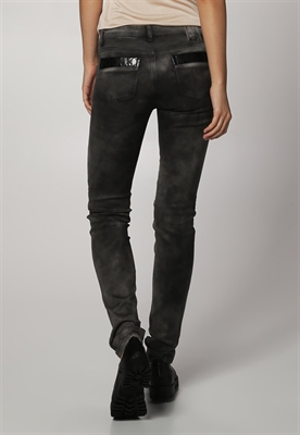 Ajuste:pitilloLargo entrepierna:81 cmMaterial/composición:vaquero, cuero sintéticoModelo, altura:179 cm, lleva la talla 34Ocasión:tiempo libreLargo exterior de la pierna:105 cmCierre:cremallera invisibleBolsillos:traseros, lateralesCintura:bajoMaterial exterior:98% algodón, 2% elastanoCuidados:lavar a manoNúmero de artículo:ON421N000-C11