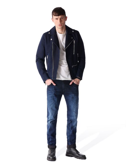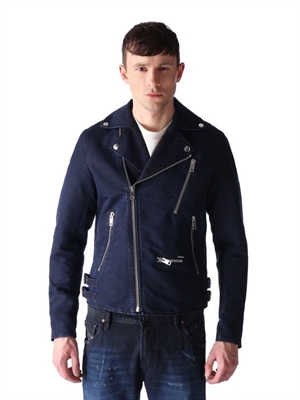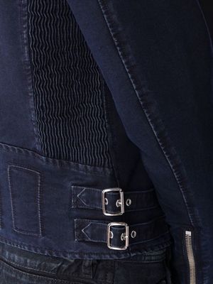 Amazing details and a modern dressed up treatment make this the biker jacket of the season.V-Neck, long sleeves, double breasted fastening, side zip pockets, belt detail, zip details.